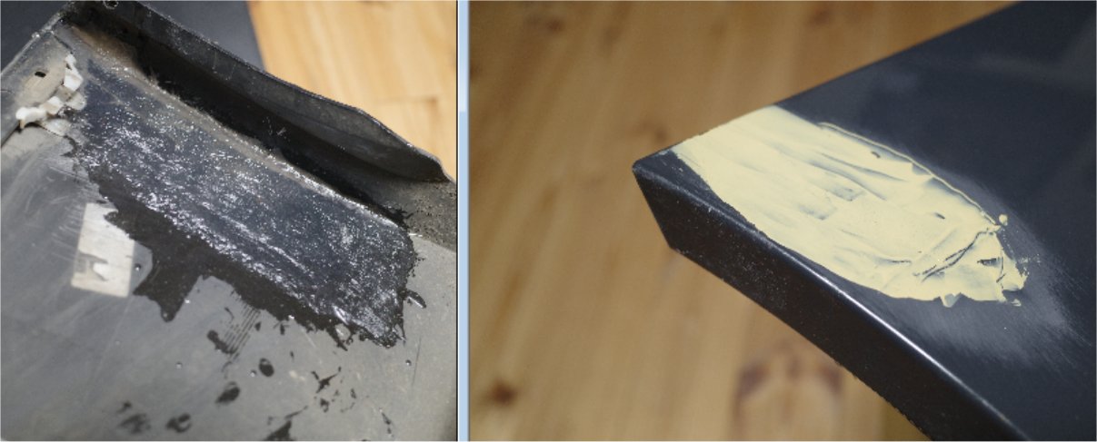 サイドステップのリアタイヤ側に10センチくらいの割れがでた。原因は何度かジャッキアップポイントがずれて