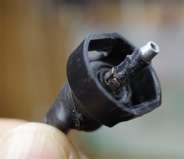 センターの飛び出ている電極が取れた。接着して押し込んでいるので