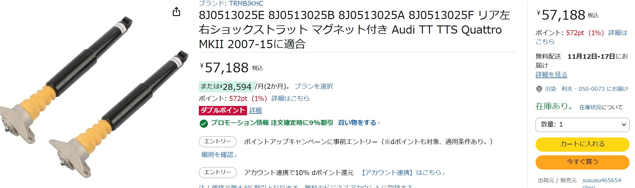 TTSのセンサーは、前後とも同じ物を使っているとのこと、早速注文。