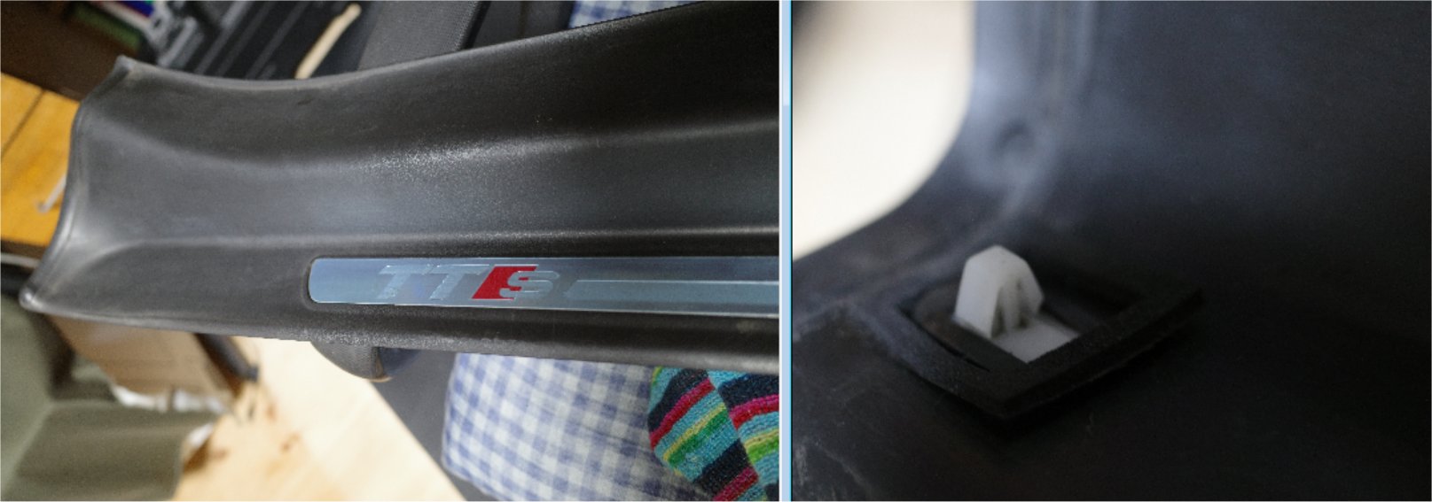地面側に付いているクリップを外し、ドア側のトルクスビスを外すと外れる。