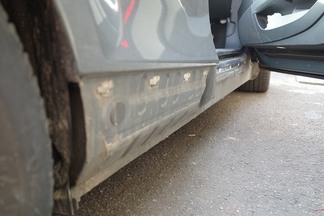 サイドステップのリアタイヤ側に10センチくらいの割れがでた。原因は何度かジャッキアップポイントがずれて